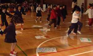 ぼくたちは,がようしで ジャンボカルタを つくって,体育かんで「ジャンボカルタ大会」をしたんだよ。