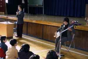 袋町児童館館長の山崎先生(前草津児童館館長)と民謡を教えていらっしゃる中本紅楓先生をお迎えして,三味線とすばらしい歌声での民謡を披露していただいた後に,「こきりこ節」を教えていただきました。