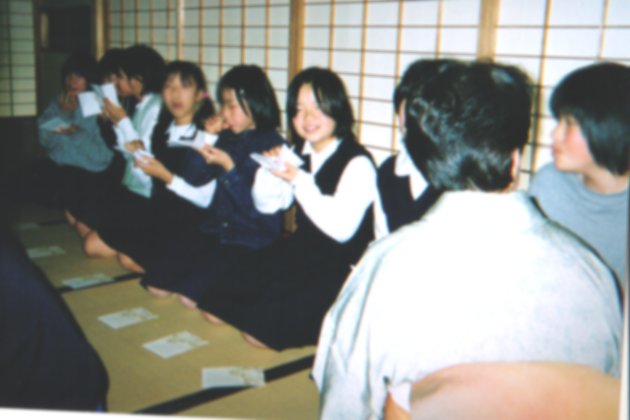お茶席は,初めての子どもがほとんどの子ども達。行くまえに配ったプリントをもう一度読み直していた子どももいました。